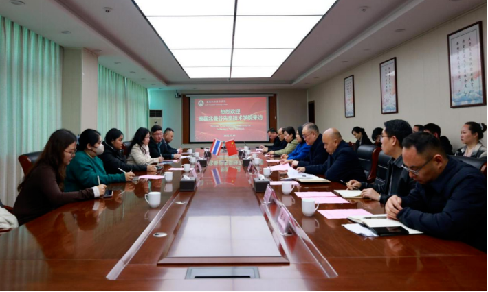 会上,邢淑婕代表学校对Phakdi Phanita一行到访表示热烈欢迎。她指出,两校在办学定位、专业布局、人才培养方向上高度契合,合作基础扎实、前景广阔,并就未来合作提出四点期望:一是共筑交流平台,深化师生互访。持续推动两校骨干教师常态化互访,共享专业建设、课程改革、实训教学经验;广泛开展学生互访、技能竞赛、文化体验等多样化活动,助力青年学生成为中泰友谊的传承者与推动者。二是共建专业课程,共育技术人才。聚焦食品智能加工技术、食品检验检测技术等优势专业,共建国际化课程体系、共享优质教学资源、共研人才培养方案,不断提升学生国际竞争力与职业适应力,为两国产业发展输送高素质技术技能人才。三是深化产教融合,协同科技创新。依托两校产业资源与科研平台,开展学术科研、技术攻关、成果转化合作,推动校企、校校协同,紧扣产业需求提升教育教学与技术创新水平。四是促进文化互鉴,厚植友好根基。以教育交流为纽带,推动中泰文化、语言、艺术等多元交融,增进师生情感认同,不断夯实两校合作基础,让中泰友谊薪火相传。